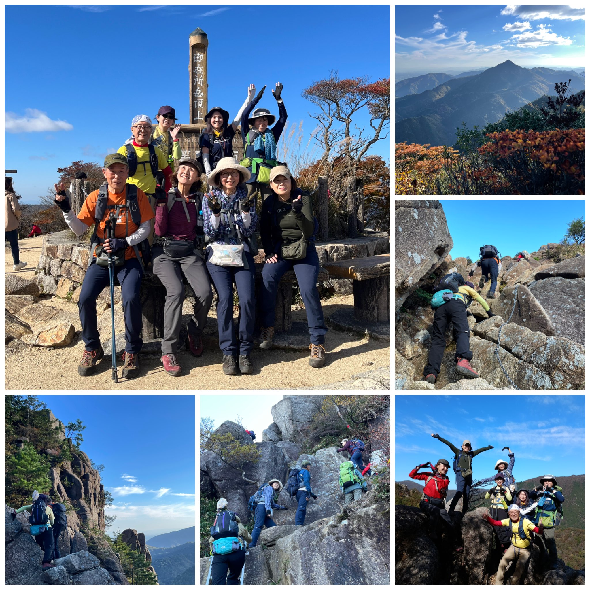 天候に恵まれ長石尾根からの御在所岳の眺望、鎌ヶ岳頂上から水沢峠への鎌尾根の眺望、武平峠から御在所岳への登りから見る鎌ヶ岳、御在所岳頂上からの雨乞岳国見岳・釈迦岳、富士見岩からの濃尾平野など絶景を楽しむことができた。